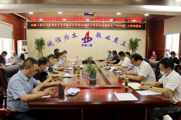 9月3日下午,安徽二建公司召开贯彻落实全国国有企业党的建设工作会议精神情况“回头看”工作部署会,学习传达了建工控股党委贯彻落实全国国有企业党的建设工作会议精神情况“回头看”工作部署会暨三季度党群工作会议精神,并对公司开展“回头看”工作进行部署安排。公司党委副书记、总经理李建成作动员讲话,公司党委副书记、工会主席王军主持会议。公司领导班子成员、机关部门主要负责人、所属各单位党政主要领导参会。