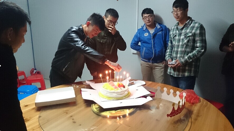 “祝你生日快乐!祝你生日快乐!”“许个愿吧”;“谢谢大家,谢谢杨经理及大家的关心,没想到在外地还能过上这么温馨的生日,真的令我很感动”,李森激动的说。11月11日,伴随着”生日快乐“的乐曲,安建.龙溪山庄项目部员工李森许下了美好的愿望并吹灭了蜡烛。这是宿松安建龙溪山庄项目部一个动人的场景。