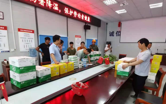 在加紧工期进度的同时,项目部还合理安排施工作业时间,尽量避开高温作业,及时发放防暑降温药品以保证安全生产。