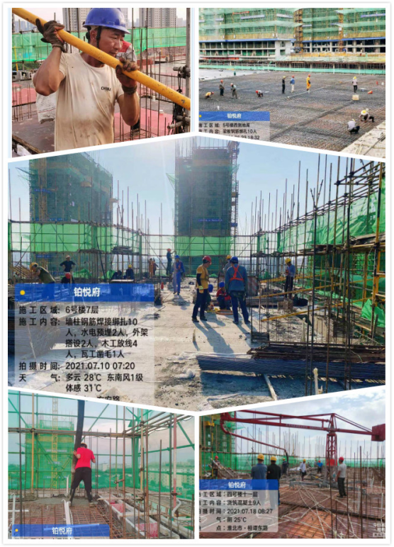 自6月21日公司2021年“学党史、保安康、抢工期、争一流”劳动竞赛活动启动后,一分公司淮北铂悦府项目立即召开动员会,根据劳动竞赛目标,梳理各班组施工任务,下达施工任务书,每天召开安全生产例会,检查当日任务完成情况,总结经验,及时分析存在的问题,并制定相应纠偏措施,确保完成施工任务。项目全体员工坚定信心、苦干实干、争分夺秒、大干快干。截止目前,各楼栋形象进度均按劳动竞赛计划完成,7月计划产值1400万,实际已完成产值1523万元,阶段性产值目标超额完成。