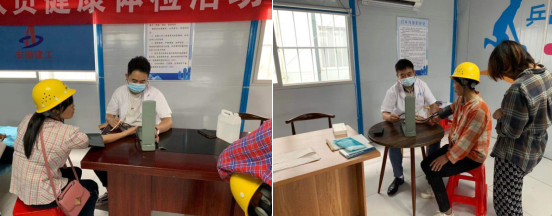 为提供专业的服务,项目部特别聘请了亳州市木兰社区的医务人员对班组作业人员进行健康体检,体检项目主要有健康咨询、血压测量、做心电图等内容,并根据体检结果建立农民工个人健康电子档案。通过此举,项目部了解和掌握农民工的身体状况,有效地预防和及时治疗各种职业病,保障一线工人身体健康。