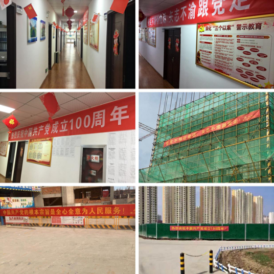 铸就百年辉煌,书写千秋伟业。为迎接中国共产党成立100周年,六分公司机关及所属项目部纷纷悬挂张贴了有关庆祝中国共产党成立100周年的标语,营造浓厚的宣传氛围,把党史学习教育进一步推向深入,大力营造“党的盛典、人民的节日”浓厚氛围,充分展示中国共产党百年光辉历程、伟大成就和宝贵经验,全面营造浓厚氛围, 共庆党的百年华诞,大力唱响共产党好、社会主义好,改革开放好、伟大祖国好、各族人民好的时代主旋律。