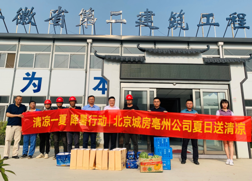 艳阳高照,晴空万里。6月11日,北京城房亳州负责人刁东良一行莅临安徽二建公司亳州滨江壹号项目部送清凉。