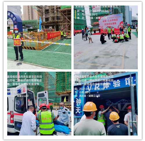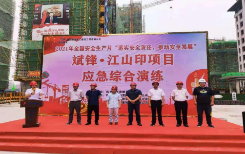此次观摩会由凤台县住房城乡建设局联合凤台县淮州置业有限责任公司、合肥市工程建设监理有限公司、安徽二建斌峰江山印项目联合组织开展,应急综合演练活动包含“消防应急救援”、“高空坠物”、“触电事故”、“疫情防控”四个演练项目,由凤台江山印项目部各救援小组成员及蓝天救援队共20余人参加演练,县住建局安监站及县应急管理局、县内施工和监理企业负责人及项目人员120余人参加了现场观摩。