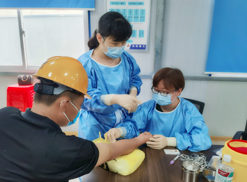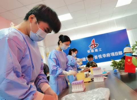 根据《安徽二建公司“我为群众办实事”实践活动方案》文件精神,6月3日上午,铜陵吾悦华府项目部特邀铜陵市疾控中心人员来项目,为一线工人进行免费体检。