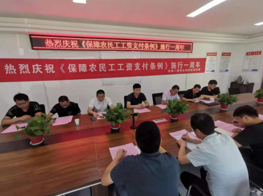 5月28日上午,淮北市相山区住建局局长卫红干、淮北市相山区劳动局局长吴泽宇携淮北市电视台至一分公司铂悦府项目举办庆祝《保障农民工工资支付条例》施行一周年活动。