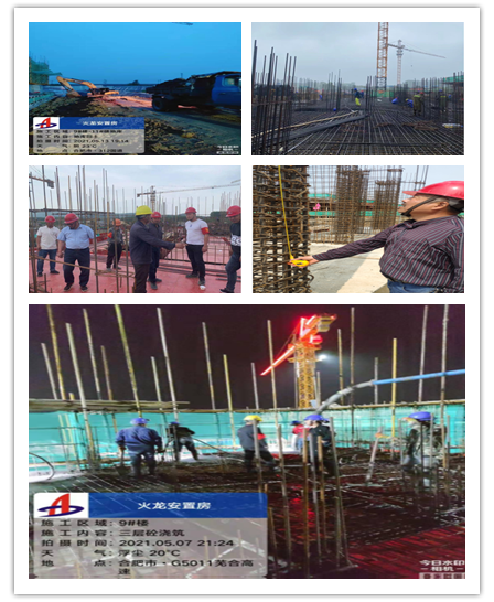 截至5月15日,劳动竞赛已过去20天,项目部克服现场只有一条公用主干道浇筑混凝土的不利因素,全力冲击既定目标。目前1#楼CFG桩基养护完成、2#楼CFG桩间土开挖完成、3#楼CFG桩基检测完成、6#楼负一层墙柱钢筋绑扎完成、7#楼负一层顶梁板模板安装完成、7-9之间地库顶梁板混凝土浇筑完成、1-2之间地库土方开挖中、9#楼五层墙柱钢筋绑扎、11#楼四层顶梁板混凝土浇筑。