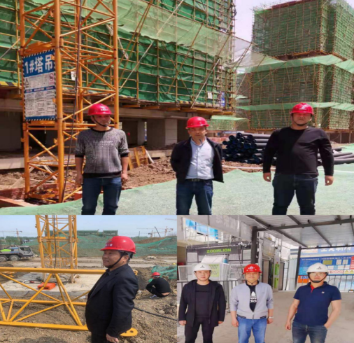 为切实加强“五一”劳动节期间安全检查及大型设备安全生产, 5月1日至5月5日,机械分公司经理周俊、党支部书记葛德云、副经理石巢兵带领分公司安全科长及安拆人员分别前往蚌埠湖山春晓、山香安置房、亳州滨江壹号、幸福城、宿州3p项目、及文一塘西津门、桃里、文一锦门繁华里滨湖工程现场,查看各项保障工作,排查安全隐患以及大型设备检查和安全生产工作。