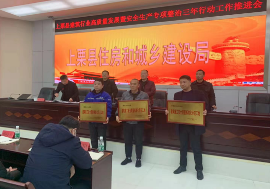 3月9日上午,江西上栗顶峰首府项目在上栗县“建筑行业高质量发展暨建筑施工安全生产专项整治三年行动工作推进会”上被授予2020年度上栗县“建筑工程质量安全标准化示范工地”称号。