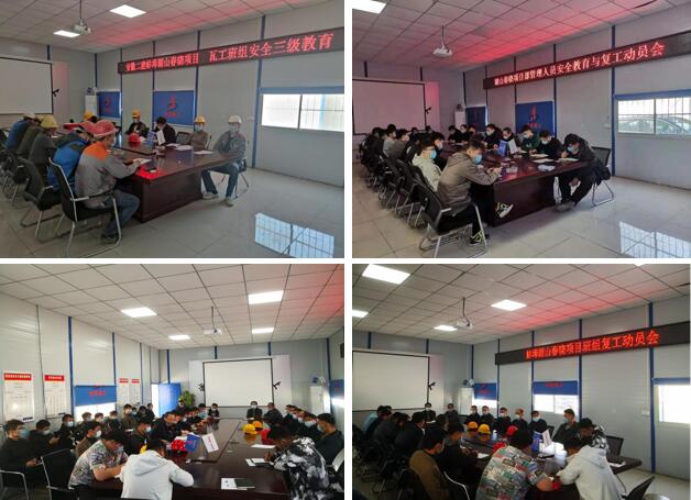 2月19日,项目召开班组复工复产动员会,并对返岗的项目管理人员、劳务人员进行三级安全教育。
