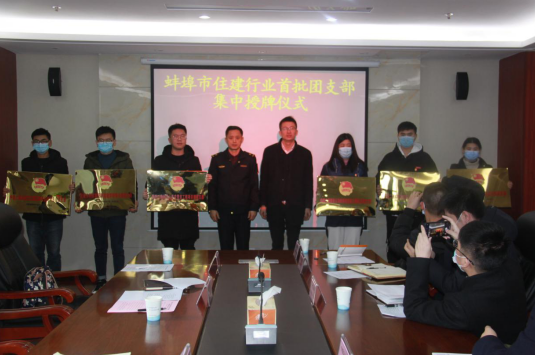 2021年2月2日上午,蚌埠市住房城乡建设行业首批团支部集中授牌仪式在蚌埠市住建局举行。会议由蚌埠市住建局副县级领导王明芳主持。蚌埠市住建局党委书记、局长王家渠,党委委员、副局长汪文学;蚌埠市团市委党组副书记韩见,组织部部长、少年部部长雷蕾;蚌埠市建筑管理处党委书记、主任唐士全,团委书记韩道斌;蚌埠市住建系统团工委书记邹振飞同志出席授牌仪式。安徽二建公司蚌埠溪湖湖山春晓、山香安置房项目参加市住建行业首批团支部集中授牌。