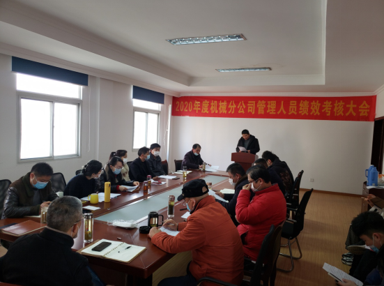 为全面落实绩效管理, 1月29日上午,安徽二建机械分公司2020年度绩效考核大会在六楼会议室召开,分公司领导及机关全体员工参加了会议。