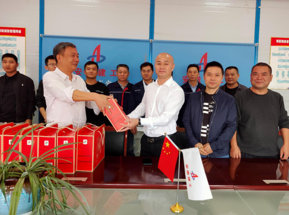 9月29日,萍乡市万新小城镇开发有限公司董事长谢干才为四分公司学府湖畔项目员工送上了中秋祝福,并带来了中秋礼品,表达了建设单位的关怀。