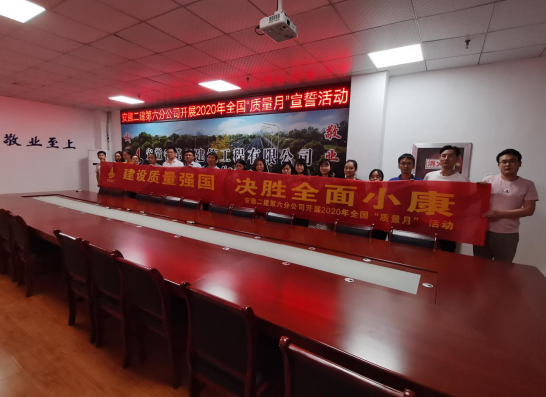 9月3日下午,为积极响应国家市场监管总局、国务院国资委、住建部、交通部等16个部门《关于开展2020年全国“质量月”活动的通知》精神,结合公司“建设质量强国 决胜全面小康”活动主题。六分公司开展了2020年“质量月”宣誓签名活动,技术质量科负责人带领大家进行宣誓,之后在横幅签名。