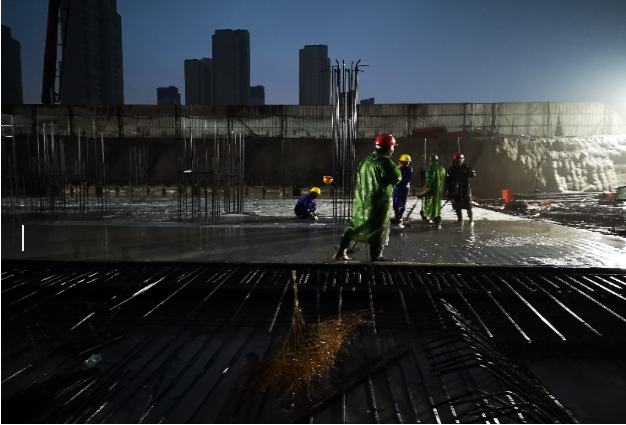 在确保工程质量的同时,强化“抢进度即是增效益”的思想意识,全体管理人员不怕疲劳,连续作战,“白加黑,5+2”成为常态化。项目部克服不利天气以及当地环保检查等影响,用不到11天的时间里完成了近1100平方米的地下室筏板施工,受到建设单位好评,为工程的后续建设创造了一个良好的开端。