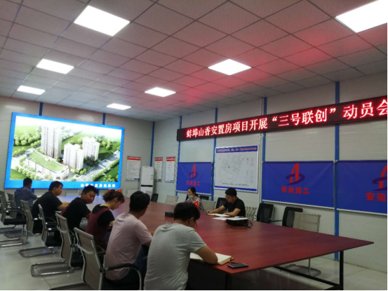 6月24日,一分公司党支部书记倪海霞带领机关人员赴蚌埠山香安置房项目,召开“三号联创”动员会。