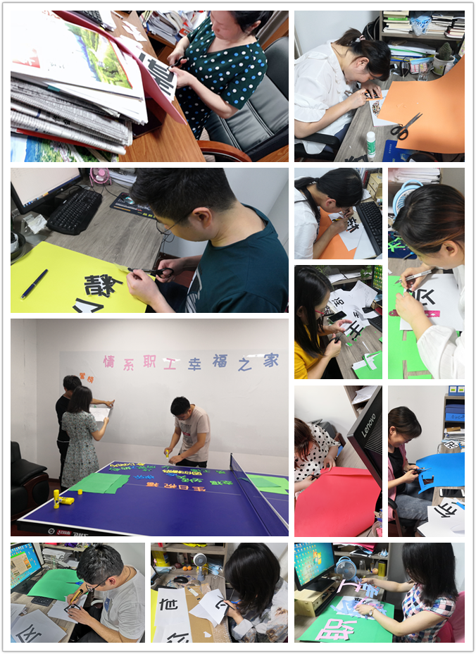 “你看我剪的就是这么完美”“对哟,你就是如此优秀”,分公司机关全体员工齐动员,相互协作,互相配合,你裁我剪,你剪我贴,在跳动的文字中谈工作、谈理想,其乐融融,现场呈一片祥和之气。当成果呈现,大家看着布置好的职工之家,满眼都是成就的喜悦,脸上露出了愉快的笑容。