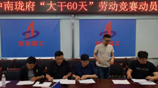为确保“大干60天”劳动竞赛顺利进行,三公司怀远中南·珑府项目积极响应公司要求,提前筹划,科学组织,合理安排,制定了切实可行的劳动竞赛方案,做好人员分工,物资设备提前计划等工作。召开动员大会,提出“大干60天,产值五千万”的口号,并与各班组签订目标责任书,明确奖罚,鼓励班组奋勇争先,营造大干氛围。