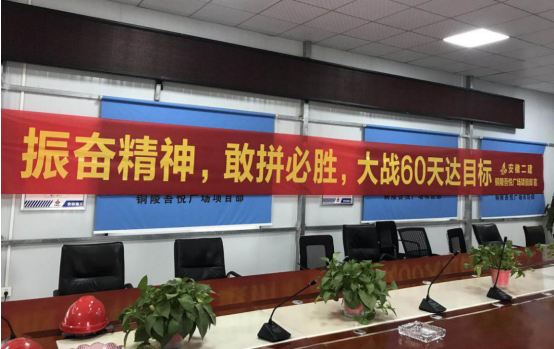 铜陵吾悦广场项目计划完成竞赛产值6000万,为保证该目标的完成,项目负责人与劳务班组签订劳动竞赛责任状,对表现优异的班组予以奖励,现场悬挂各类条幅宣传大干60天劳动竞赛精神。