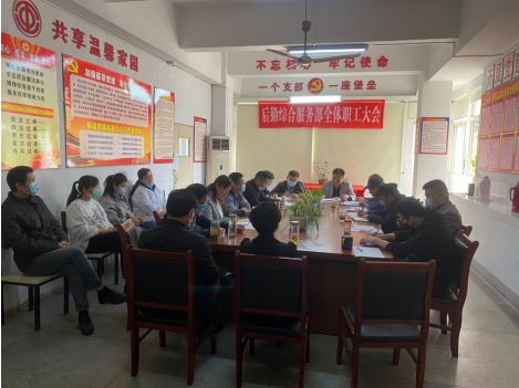2020年4月27日下午,后勤综合服务部召开职工大会,16名职工参加,公司总经理助理、市场管理部主任蒯家江到会指导。