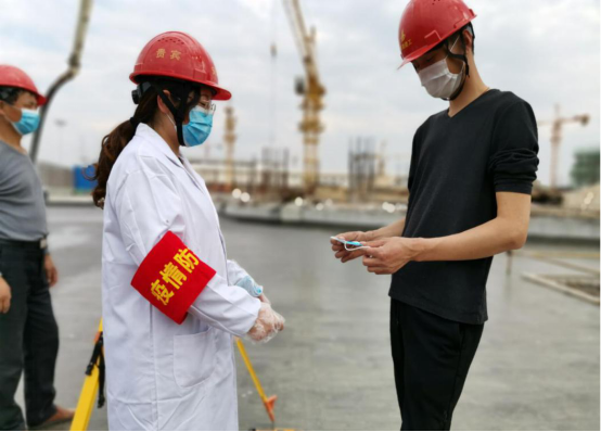 项目部严格按照当地政府和卫生防疫等部门要求,保证防疫工作的有效落实以及安全生产,及时完善项目疫情防控方案及应急预案;保证施工现场区域、办公区、生活区等一天两次的消毒杀菌工作;保证劳务人员,项目管理人员一天两次的体温测量;保证工人生活区,项目办公室和宿舍环境卫生整洁,通风良好;保证人员切实履行集中订餐、分散就餐的行为,并督促员工养成注意卫生、勤洗手、戴口罩的习惯,对出现体温异常的人员,坚持及时上报,精准排查的原则,采取有效隔离和治疗措施,确保人员安全。
