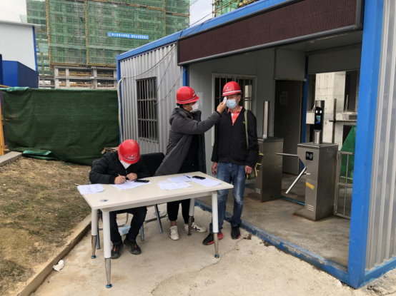 项目部按计划抢抓工期,全力推进项目建设的同时,以做好项目现场疫情防控为前提,实行“半封闭+强防护”管理,在备足口罩、消毒液、洗手液等防护用品的同时,严格执行门禁、实名制管理制度,做好每天体温测量和记录台账,食堂坚持严把食品五道关,严格执行分餐制,避免聚集,提倡工人、管理人员居住在现场员工和工人宿舍,并按每间寝室最多居住不超过4人的标准安排住宿,最大程度上保障现场作业人员的身体健康与生命安全,确保项目复工安全有序进行。“36.6℃,体温正常,请戴好口罩!”走进项目部,随处可见新冠肺炎疫情防控的宣传标语,广播中一遍又一遍地重复播放着疫情防控的注意事项。