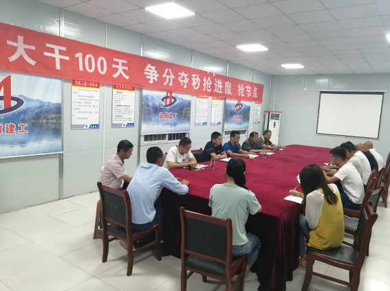 8月30日,一分公司淮北国金华府(紫麟苑)项目在现场会议室召开“抢进度、保工期、稳预期、促提升,大干100天”劳动竞赛动员会。会议由分公司生产副经理崔俊主持,分公司所属科室、项目部全体人员及各班组负责人参会。