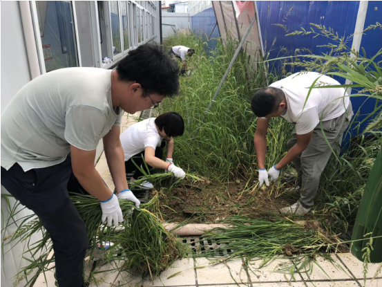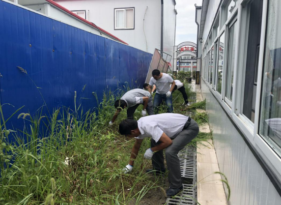 7月25日下午四时,大家顶着炎炎烈日对项目部办公区周边杂草进行清理。每位同志干劲十足,充分发挥团队协作精神,炎热的天气挡不住火热的激情。经过一个多小时的努力,院内杂草全部清除干净,环境焕然一新。
