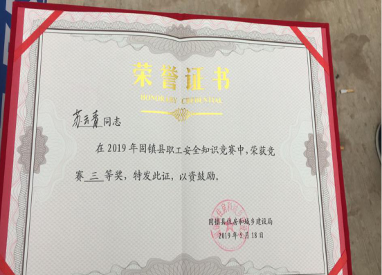 2019年5月18日,蚌埠市固镇县住建局举行“县第九届建筑技能安全知识大赛”,安徽二建五分公司固镇名邦国际花都项目专职安全员苏云青在安全知识竞赛中喜获三等奖。此次竞赛对于苏云青而言,学到了很多安全知识,提高了安全意识和管理水平,在以后的工作中,将会以更加饱满的热情投入到项目安全管理中去,保障项目安全生产平稳运行。