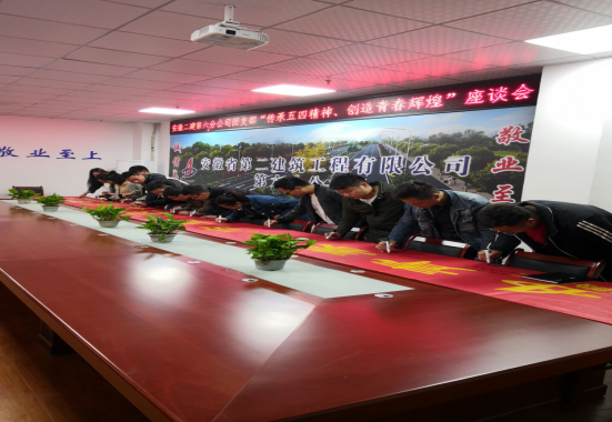 随后,团支部召开安徽二建六分公司“传承五四精神,创造青春辉煌”座谈会。