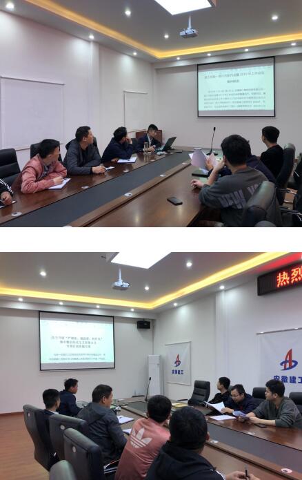 3月18日晚上,文一·塘津门五标段项目组织召开《建工控股一届六次职代会暨2019年工作会议》 《关于开展“严规矩、强监督、转作风”集中整治形式主义官僚主义专项行动实施方案》专题学习会,会议由项目经理蒯声文主持,项目部全体员工参会。