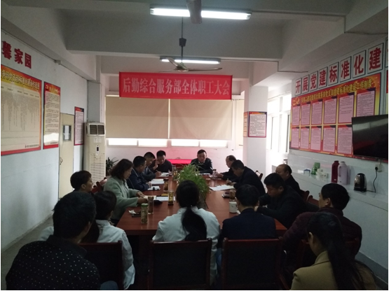 仇多维作总结讲话,对后勤广大干部职工提出四点意见和要求:一是加强学习,找准定位,明确工作目标和方向,努力做好服务保障工作;二是班子成员要以身作则,率先垂范,激发员工工作热情,同时做好后勤广大干部职工思想政治教育工作,同心同德,撸起袖子加油干;三是后勤班子成员要大胆管理,明确责任,廉洁自律,同心协力,进一步推动后勤改革创新发展;四是广大干部职工要有大局意识、看齐意识,弘扬正能量,树立正气,提振信心和责任担当,凝心聚力,以良好的精神状态和风貌,全面完成公司部署的各项工作任务,以优异的成绩迎接建国70周年!