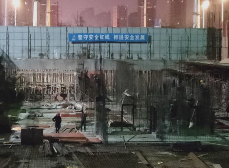 钢筋班组晚上加班施工