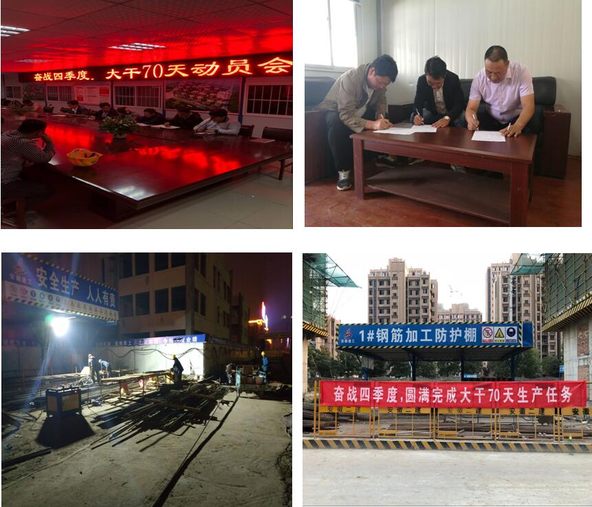 参赛项目已全面进入竞赛状态,宣传横幅随处可见,大干氛围浓厚。分公司要求各项目部在保证质量、安全的前提下,加班加点,克服困难,为实现“大干七十天”达到预定目标而不断努力!