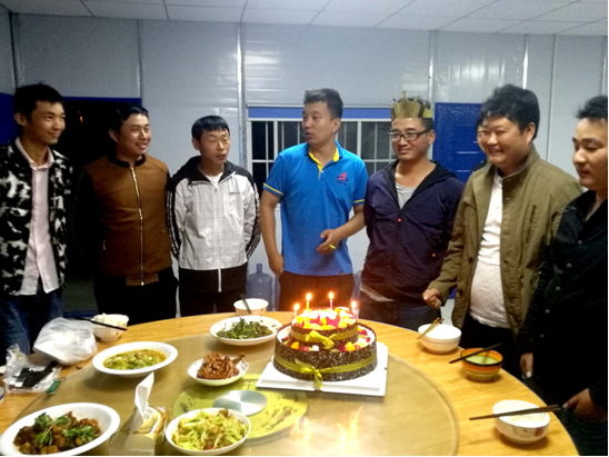 10月11日晚上,项目部举行了一次特殊的聚会,大家共同举杯为项目质检科科长施若愚庆祝生日,将一句句祝福,一份份真诚送到他的心坎里。