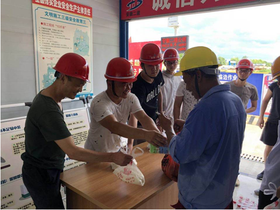 项目部另外向各班组长发放了防暑药品、白糖、绿豆,由各班组长统一使用。此次送清凉活动获得圆满成功,给项目部全体成员送去了丝丝清凉。炎炎夏日送清凉,滴滴关怀沁人心。大家齐心协力,共战高温,头顶的烈日好像也不那么强烈了!