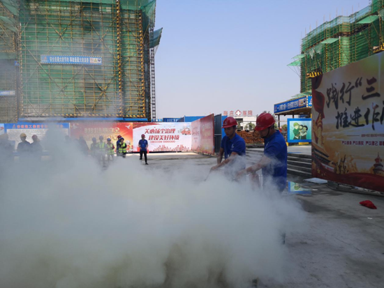 启动仪式上,一分公司副经理崔俊对本次安全生产月活动主题、活动主要内容进行了宣贯,并对后期安全生产工作进行安排部署,随后在安全负责人的带领下庄严宣誓,并有序地在宣誓标语横幅上签名。项目人员还观摩学习了灭火器的正确使用方法以及对因高空坠物受伤人员的紧急处理演示。