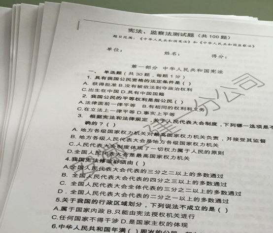 为维护宪法权威,贯彻落实监察法,5月11日,一分公司组织开展领导班子、科室负责人、项目经理两法学习专题活动。支部书记倪海霞针对5月9日在分公司QQ群中分享的电子档“两法”文件,结合分公司工作实际与参会人员一起研读学习中华人民共和国宪法、中华人民共和国监察法,畅谈学习心得体会,努力营造学习宣贯两法的浓厚氛围,让两法精神深入人心。会后,分公司对参会人员进行试卷考核,更让大家牢固树立法律红线不能触碰、法律底线不能逾越的观念。