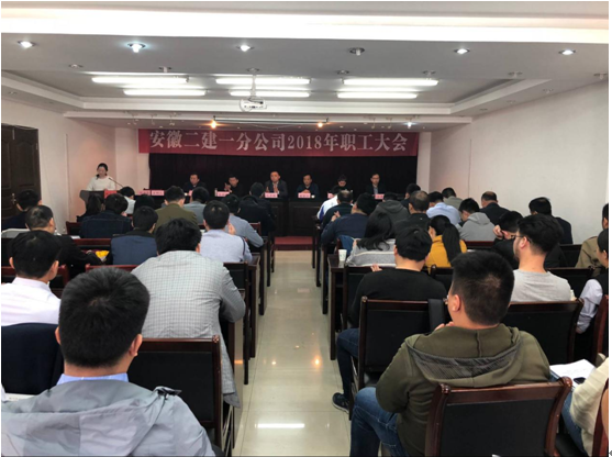 3月28日,一分公司2018年职工大会隆重召开。来自各项目的技术骨干、分公司机关全体员工共计51名职工欢聚一堂,总结2017年度分公司各项工作,共商2018年发展大计。公司纪委书记仇多维、工会副主席蒯家江到会指导。会议由分公司党支部书记倪海霞主持。
