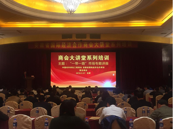 3月27日,安徽二建四分公司党支部书记董建民等3人应邀参加了在外经戴斯酒店举办的安徽省国际经济合作商会大讲堂系列培训,本次培训由中国对外承包工程商会与安徽省国际经济合作商会联合举办,此次培训为期两天,以“一带一路”市场为主题,近300人参加培训活动。