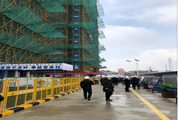 在项目施工现场,对项目的布局、管理标准规范、工程实体、新技术应用等亮点部位进行观摩。项目部负责人向大家详细介绍了项目的成本控制、质量管控、安全文明施工等相关情况,尤其在格构式塔吊基础的利用、无料台施工电梯的设计、套扣式脚手架的使用、现场循环水的收集再利用、VR安全体验新技术的应用等方面给大家提供了好的借鉴。