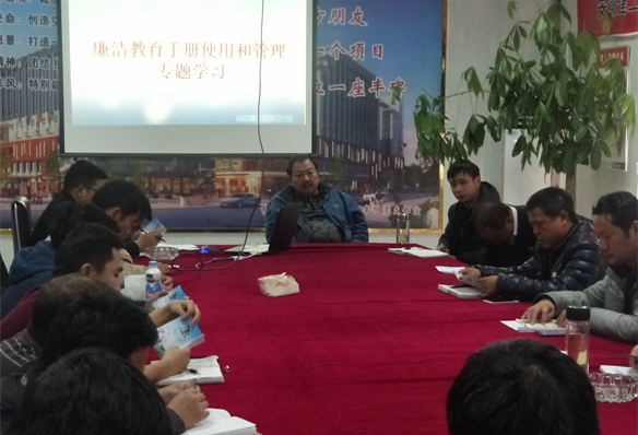 会上,项目党支部书记孟庆武要求参会人员认真学习廉洁教育手册,务必妥善保管好手册。随后党支部委员、广元大学城红街项目经理张军带领大家共同学习手册的重点、解答手册的难点。