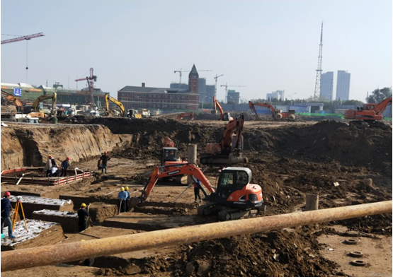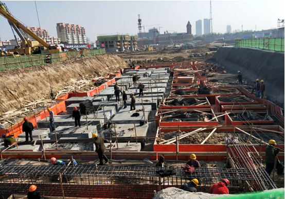 目前,各栋楼施工顺利进行,从土方开挖到地下室施工,处处呈现一片繁忙景象,施工高潮已全面形成。