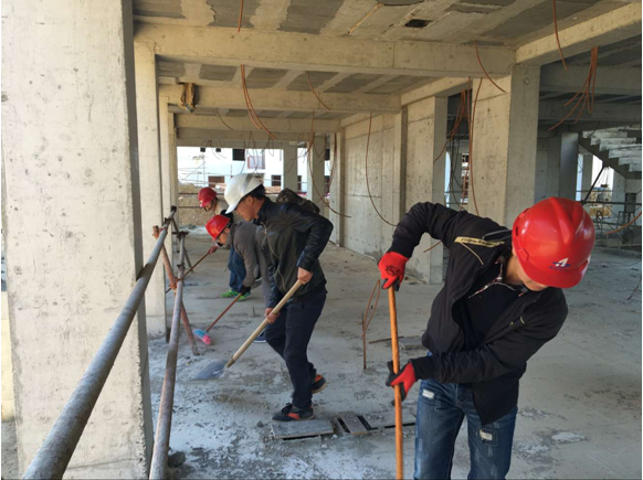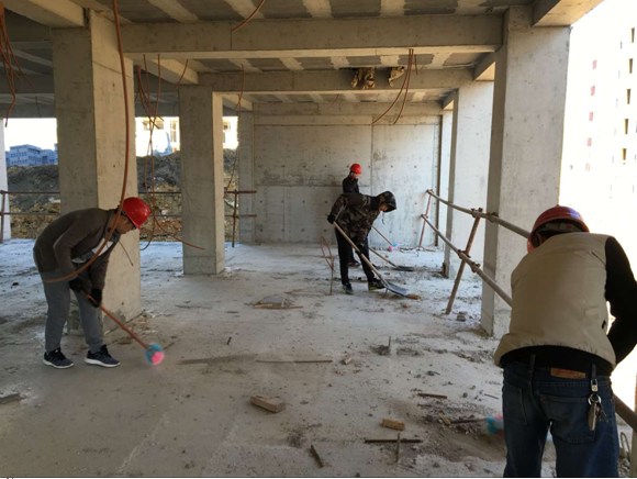 近日,由于工人到期回国人数较多,为满足业主交房要求,阿尔及利亚康斯坦丁6000套工程项目部动员项目管理人员进行楼层垃圾清理,参与现场放线测量。