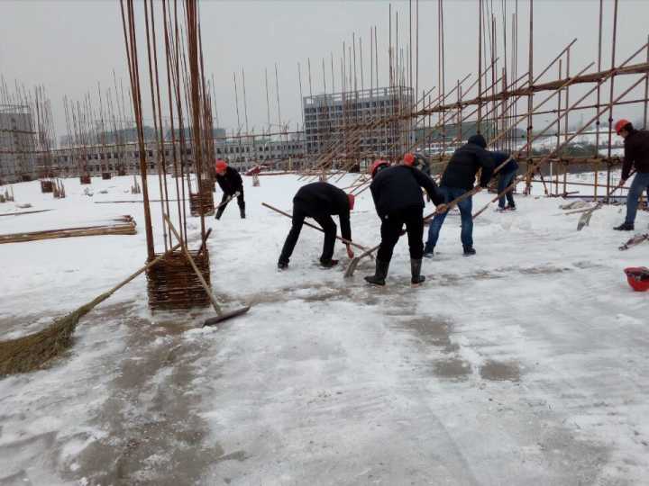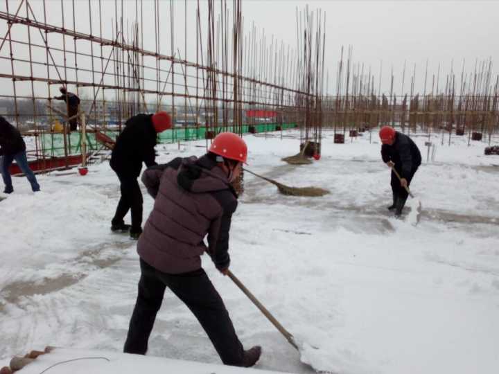 突降大雪,气温骤降,给正在加紧施工拼抢工期的太和标准工业厂房项目部带来了不小的阻力。为保证来之不易的大干场面不受影响,针对天气变化,项目部及时调整施工方案,强化现场安全管理,确保现场安全受控。