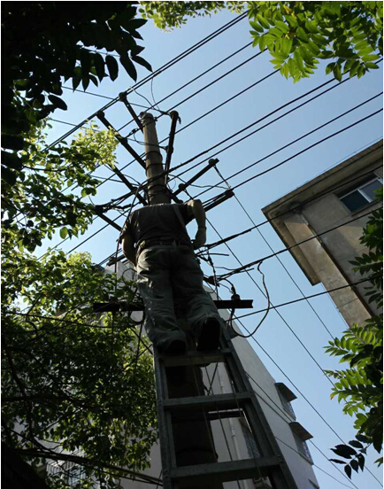 7月23日,原二公司生活基地由于供电线路严重老化,发生线路着火断电事故,后勤综合服务部接到险情报告后,立即组织抢修队伍奔赴现场,维修人员不惧高温酷暑,顶着烈日,经过几个小时的高空作业,及时恢复了供电。