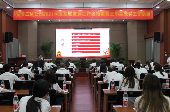 为深入学习贯彻习近平新时代中国特色社会主义思想和党的十九大及十九届历次全会精神,认真落实新时代党的建设总要求,进一步提升公司党务工作者的政治素质和业务能力,着力深化拓展基层党组织标准化建设成效,着力增强党支部创造力、凝聚力、战斗力。7月16日,安徽二建公司在新会议室举办了2021年度基层党务工作者培训暨三季度党群工作例会。公司党群部门人员、基层各单位党支部书记、团支部书记、综合办全体人员、项目支部班子成员等参加。