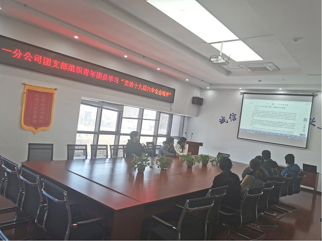 党旗所指就是团旗所向,12月3日上午,第一分公司团支部在会议室组织机关青年团员学习十九届六中全会精神。