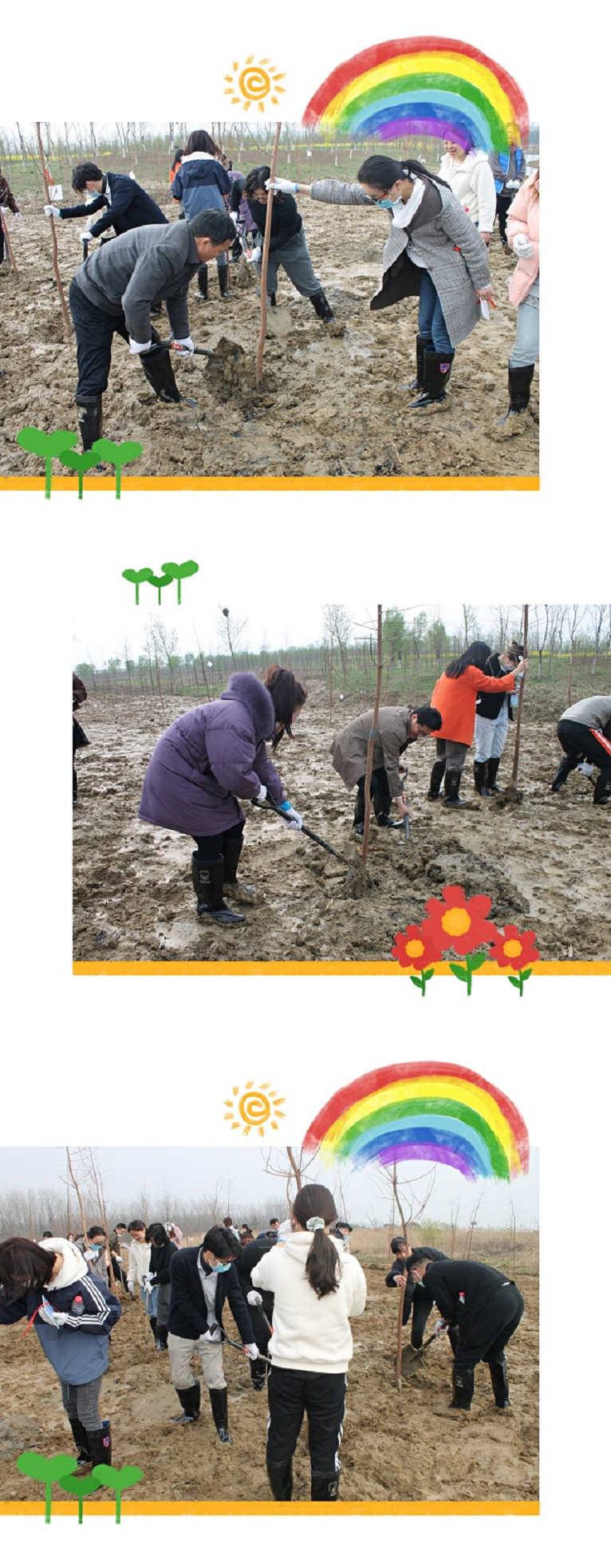 大家个个干劲十足,不畏辛苦,圆满完成了种植任务,还给自己种下的树苗挂上了心愿卡片。