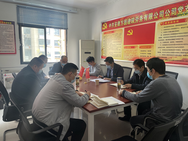 3月30日上午,方圆劳务公司党支部在会议室召开2021年度组织生活会,公司党委委员、副总经理叶和永,党委工作部主任施用宏、纪检监察室主管吕杨到会指导,会议由方圆劳务公司党支部书记朱庆年主持,全体党员参会。